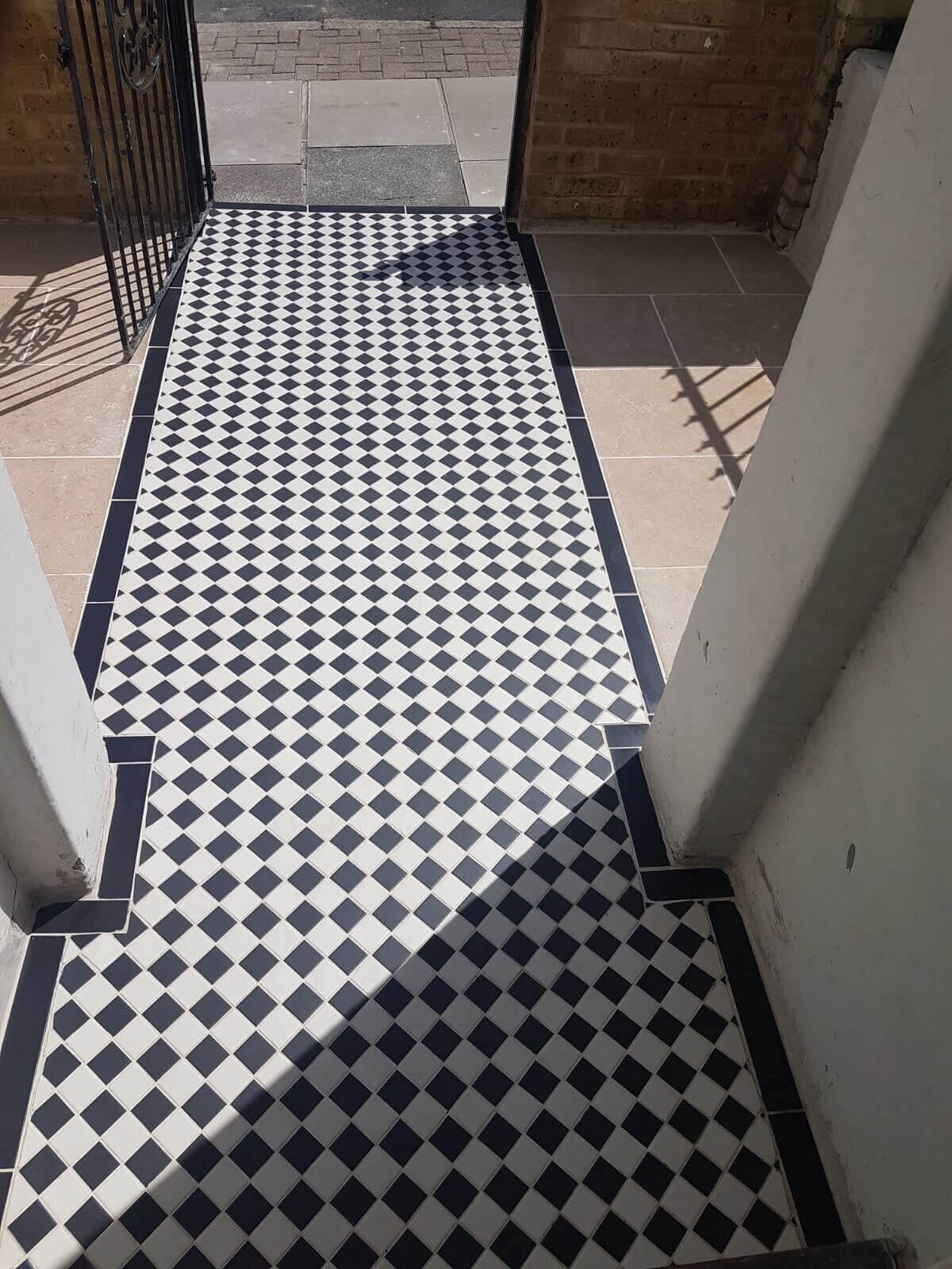 Are you ready to upgrade your front garden with a luxurious geometric/mosaic-tiled porch/path? Contact us today for professional Victorian tile installation services in Knightsbridge SW7.